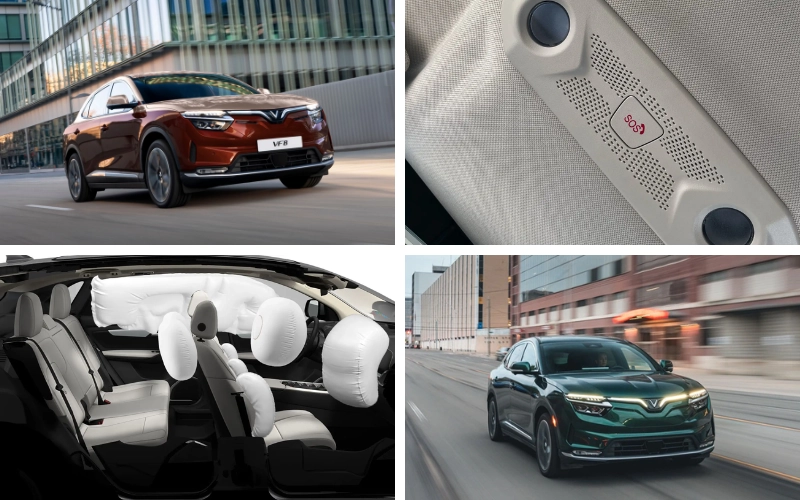 VF 8 được thiết kế với tiêu chuẩn an toàn cao nhất, mang đến sự bảo vệ toàn diện và yên tâm tuyệt đối cho người dùng. Xe được trang bị 10 túi khí (VF 8 Eco), 11 túi khí (VF 8 Plus) cho toàn bộ hàng ghế lái, ghế phụ, hai bên hông, khu vực trung tâm… để đảm bảo độ an toàn cao nhất cho mọi hành khách trong các trường hợp khẩn cấp.